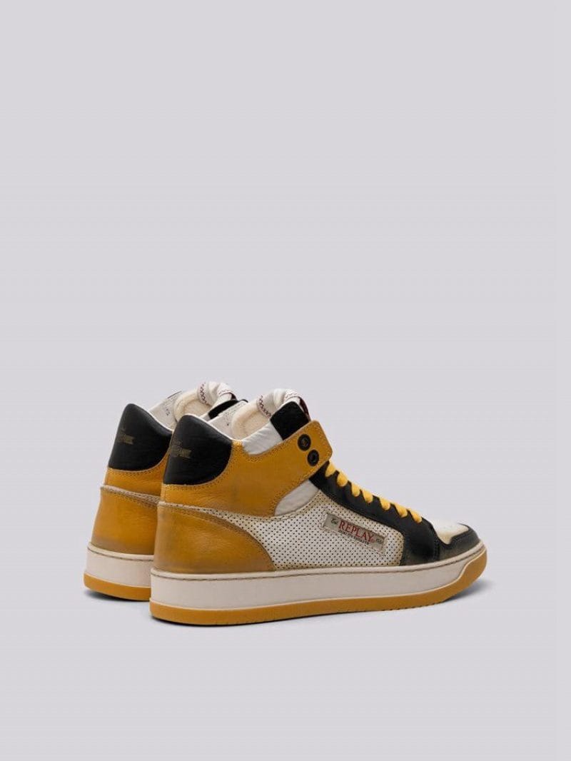 Reload Bee mid-cut sneakers with laces characterized by the upper in full grain leather with microperforated details and vintage finishes. Two-tone thick sole, customized label on the tongue and on the side.